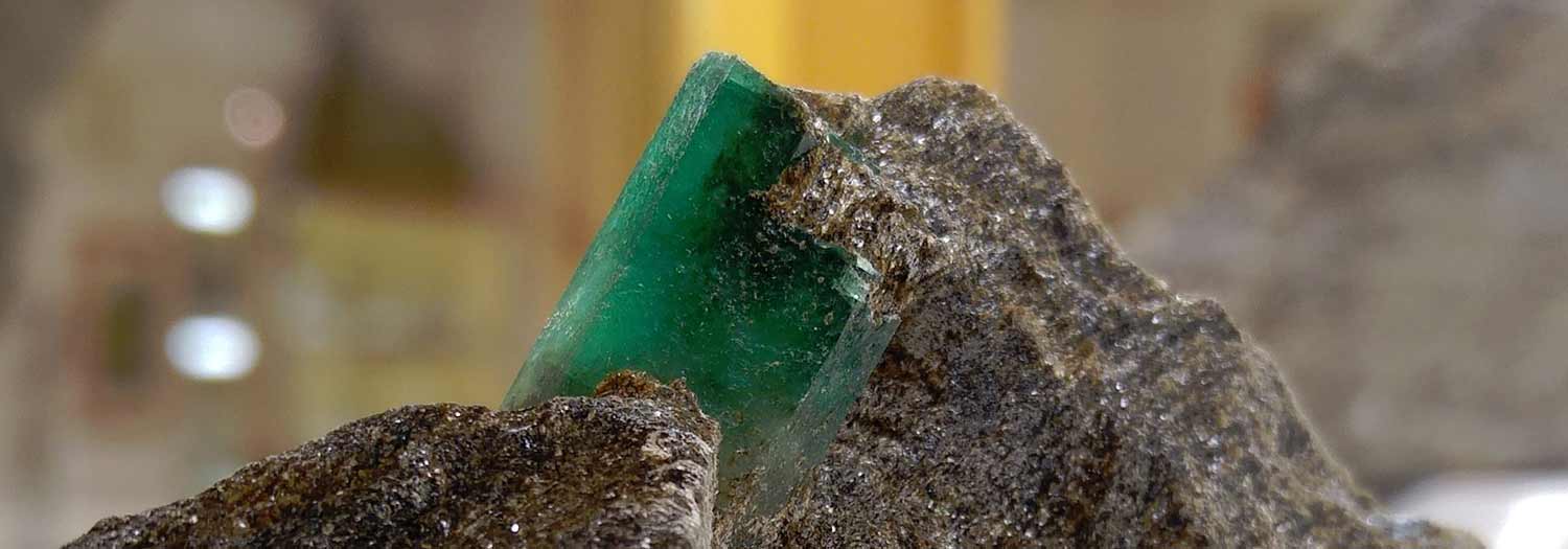 Exponate an verschiedensten Mineralien und Kristallen