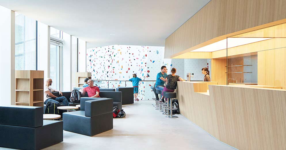 Boulderraum bietet eine Kletterfläche von 400 m² mit 120 Boulderrouten in den