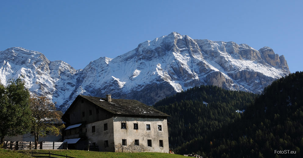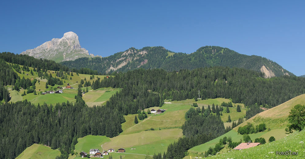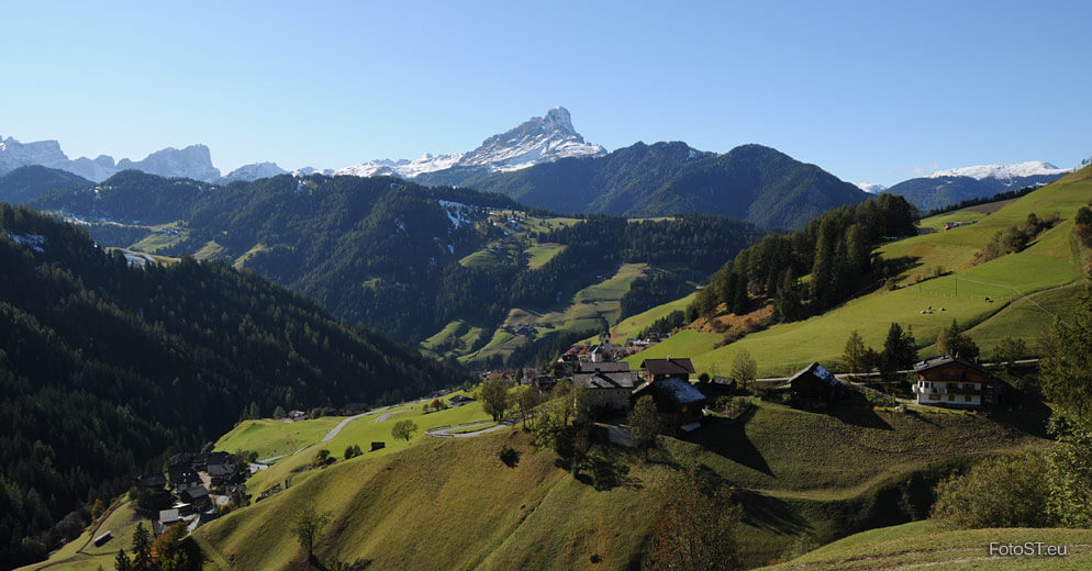Wengen liegt in Südtirol, im Gadertal – Val Badia, inmitten der Dolomiten.